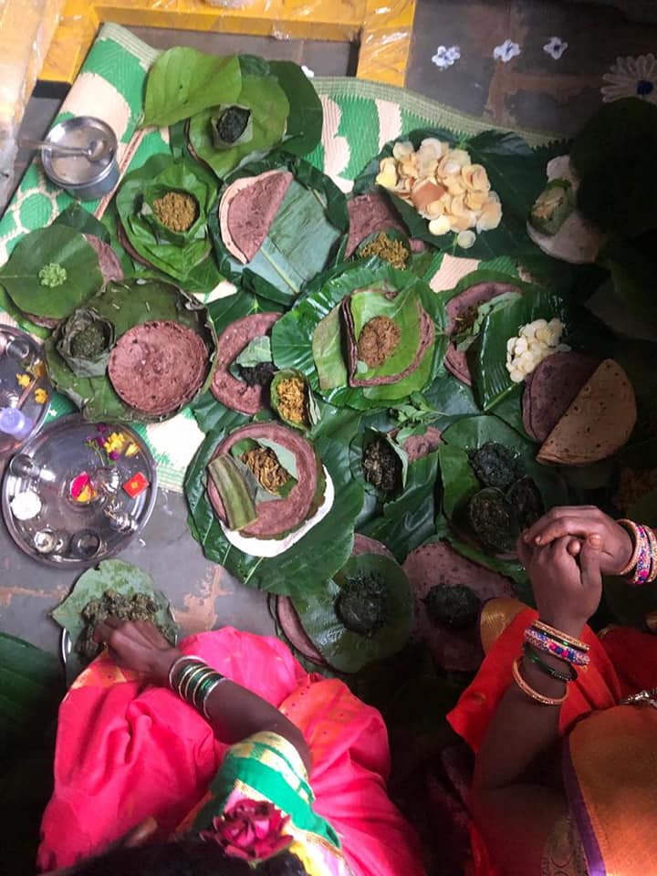 The Mahotsav is arranged fully by the village community with Vayam bringing guests from government and from city friends. We have facilitated the Mahotsav in over 54 villages in last few years taking new villages every year. This year villages Jadhavpada, Dhoompada, Thakrepada, Bejpada, Rautpada, Vadpada, Ghorpadtep – conducted Ranbhaji Mahotsav (Forest food festival). They welcomed the guests with traditional music in the festival. Cooked wild delicacies were presented in decorated platters and banana leaves. All villagers including children along with the guests relished the food. Then the youth drew a map of forest food on blackboard and our team facilitated a discussion on how we can protect this food wealth.