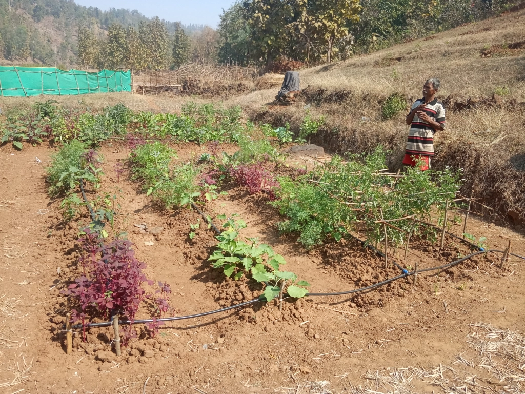 Forest food diminishes after monsoon and same is the case of home-grown vegetables for want of water. Vayam has helped people with small ponds layered with geo-membrane to store rainwater and use the same for micro-irrigation. This pond or Jalkund was taken up by 237 farmer families from 18 villages this year. Vayam added ‘Bhaji-wadi’ – a 20 sq.m. vegetable mini farm to this supporting the farmers with seeds/saplings and a drip irrigation kit. All the participant farmers gave cash and labour contribution in this project. 110 farmer families from 8 villages are enjoying home-grown fresh vegetables now.