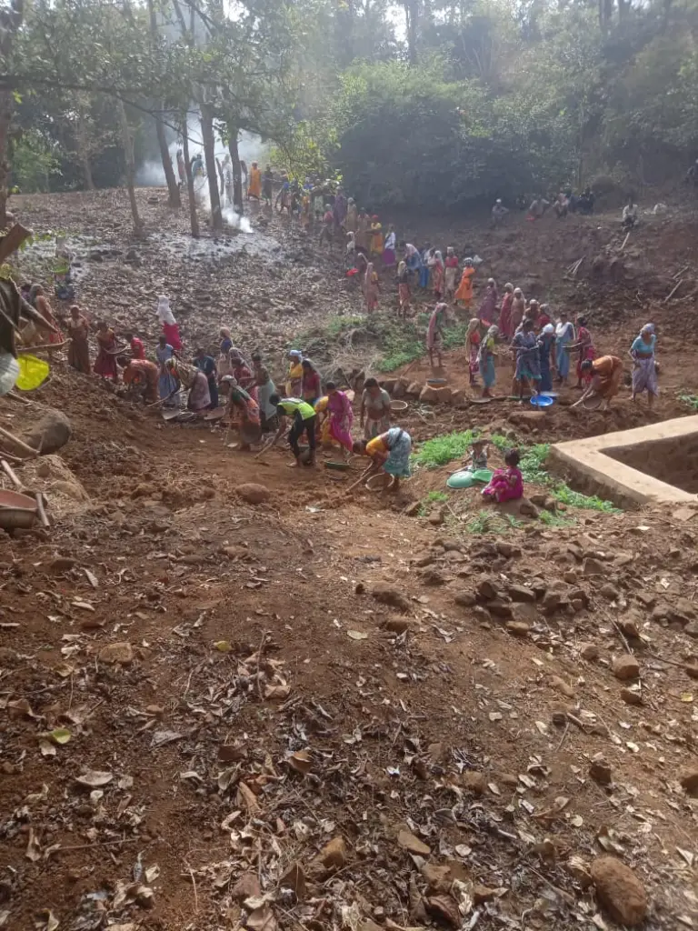 Vayam supported these water plans by building water bodies; viz. drinking water wells in three villages, and 7 spring cordons in two villages this year. This is the third year of our Swasth Vikas Shashwat Jal project. New villages following the same norms: entire construction management by people and voluntary labour once every week.